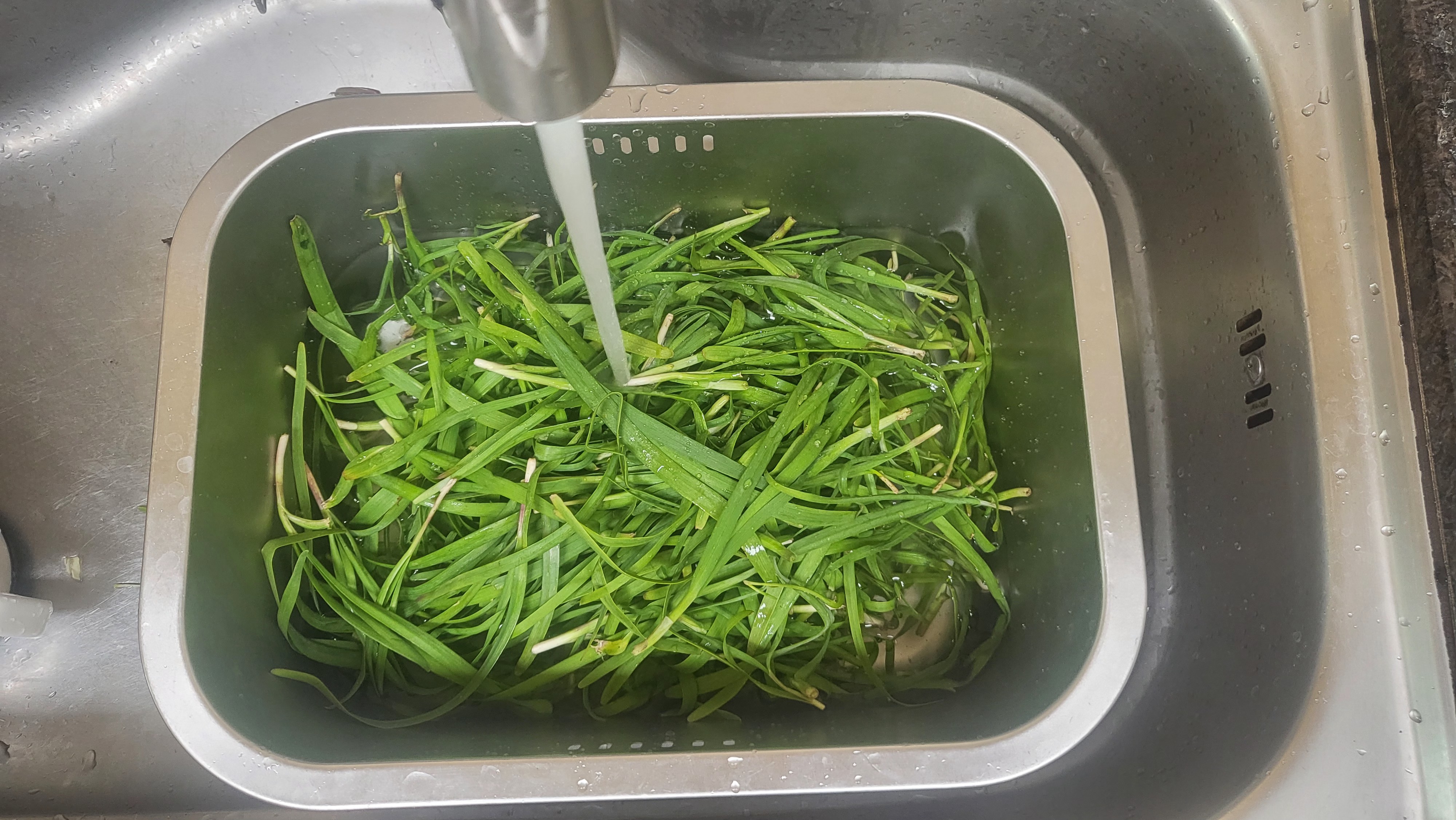초벌부추는 모래가 많아서 씻을때 흐르는 물에 무르지 않게 조심해서 5~6번정도 씻어 주세용~~